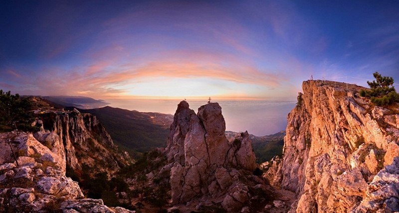 Сегодня изучаем Ай-Петри. Ай-Петри — это не только гора, но и плато по которому мы продолжим наш путь. Довольно скоро окажемся у тех самых знаменитых зубцов Ай- Петри к которым так стремятся все посетители Крыма. А ведь не зря! С высоты 1234 м. над уровнем моря открывается таааакой вид, что не описать словами! Самые смелые смогут пройти по веревочной лестнице над пропастью. Ну а остальные посвятят время фотосессии на высоте птичьего полета. Дальше тропа поведет нас на запад и будет относительно ровной, без наборов высоты. Ближе к вечеру группа выйдет к котловине Беш-Текне, рядом с которой высится г. Ат-Баш. Тут и будет очередная ночевка.